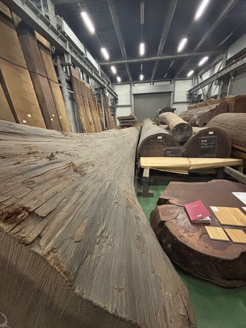 そしてこれらの写真は先日、日本住宅・木材技術センターにおいて開かれた勉強会で参加した際に訪れた銘木館(株式会社長谷川萬治商店で知られる長谷川萬治氏のご子息より銘木を寄贈)で撮影したものです。丁度『重源』の大木の伐採にかかるところを読んでいるタイミングだったのでひどく心に刺さりました。